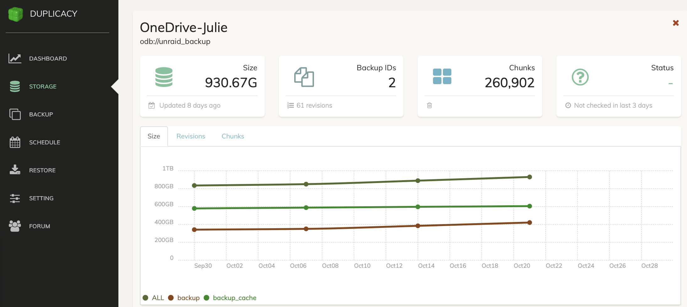 Regarding your questions: I’m using an Unraid server here and Duplicacy is running in a docker.