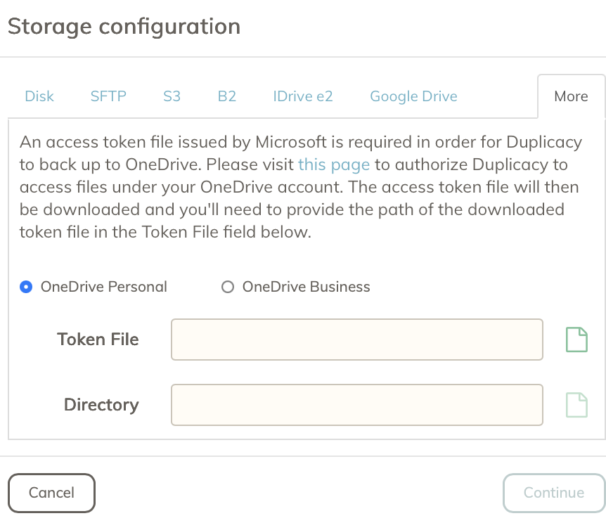When I setup a new OneDrive storage I’ve got these options (see screenshot).