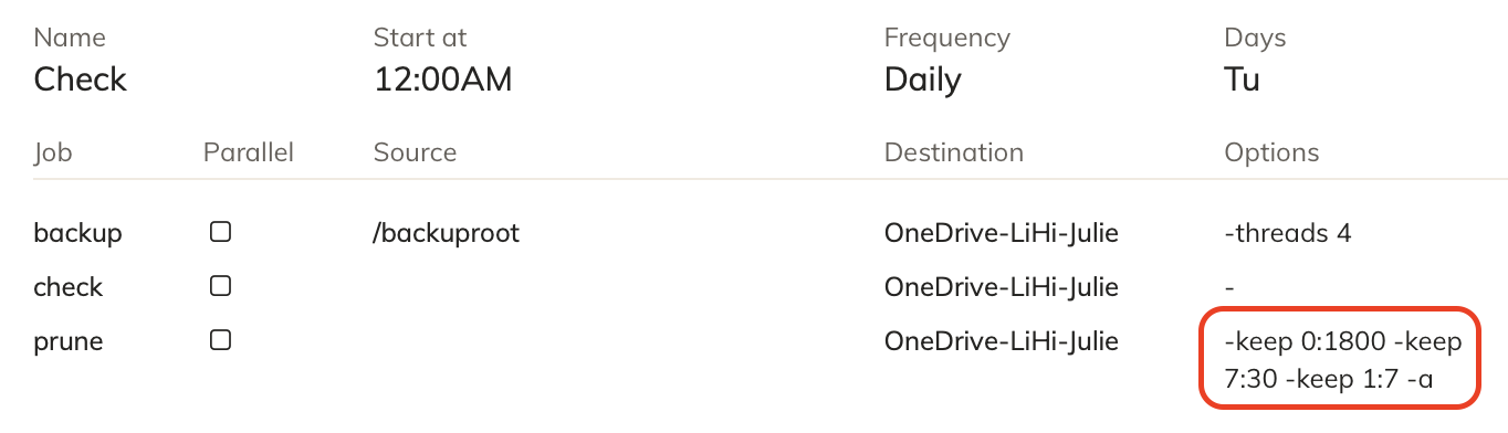 I have tried to look through the options for backup and prune but I do not see a specific option for this issue. I am using web edition 1.0 Personal on Arm Linux and what I want to do is limit the occupied space on my storage.
