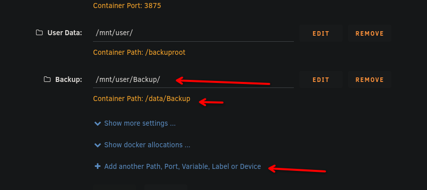 image where I mount /mnt/user/Backup/ to /data/Backup. Is this the right