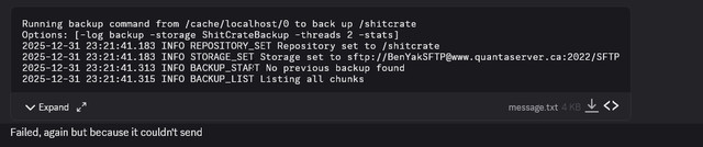 Nothing has changed on either side otherwise, I haven’t changed how the sftp server is set up or duplicacy on the host side, and again it goes through 90% of the backup fine, then has that issue at the end.